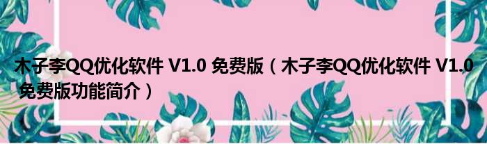 木子李QQ优化软件 V1.0 免费版(木子李QQ优化软件 V1.0 免费版功能简介)