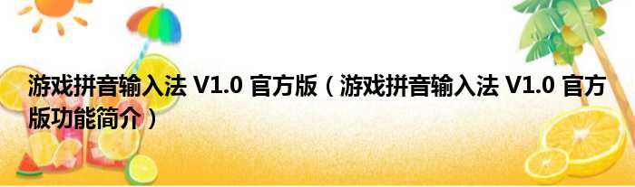 游戏拼音输入法 V1.0 官方版(游戏拼音输入法 V1.0 官方版功能简介)