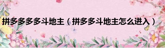 拼多多多多斗地主(拼多多斗地主怎么进入)