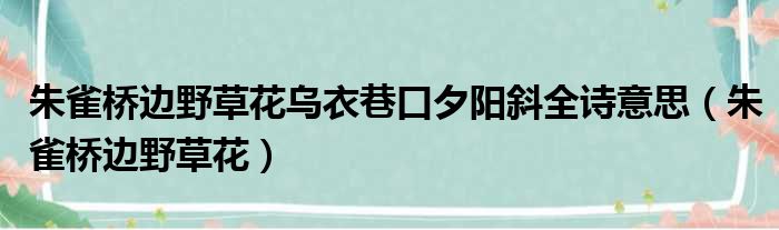 朱雀桥边野草花乌衣巷口夕阳斜全诗意思(朱雀桥边野草花)