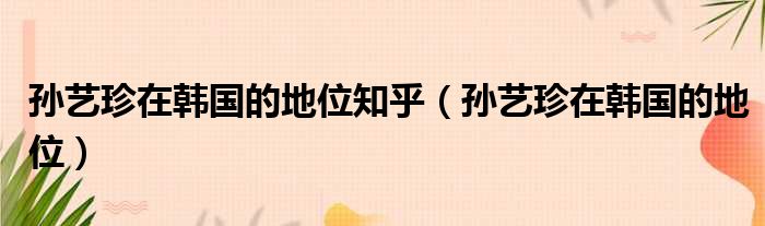 孙艺珍在韩国的地位知乎(孙艺珍在韩国的地位)