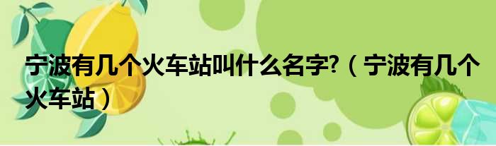 宁波有几个火车站叫什么名字?(宁波有几个火车站)