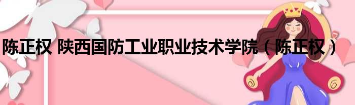 导读 大家好,今天小六子来为大家解答以下的问题,关于陈正权 陕西国防工业职业技术学院,陈正权这个很多人还不知道,现在让我们一起来看看吧!1