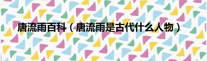 大家好,今天小六子来为大家解答以下的问题,关于唐流雨百科,唐流雨是古代什么人物这个很多人还不知道,现在让我们一起来看看吧!