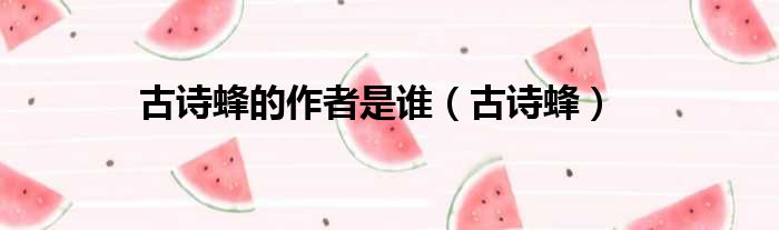 大家好,今天小六子来为大家解答以下的问题,关于古诗蜂的作者是谁,古诗蜂这个很多人还不知道,现在让我们一起来看看吧!