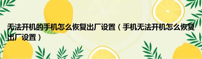 无法开机的手机怎么恢复出厂设置(手机无法开机怎么恢复出厂设置)