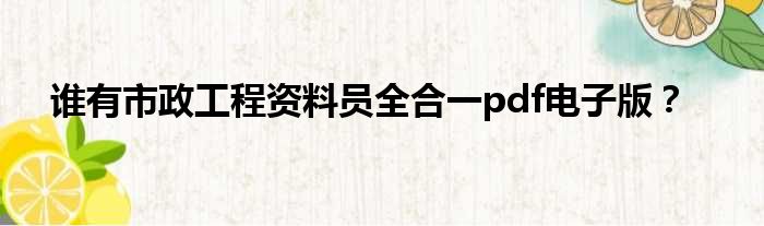 大家好,今天小六子来为大家解答以下的问题,关于谁有市政工程资料员全合一pdf电子版?这个很多人还不知道,现在让我们一起来看看吧!
