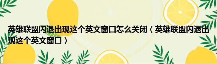 英雄联盟闪退出现这个英文窗口怎么关闭(英雄联盟闪退出现这个英文窗口)