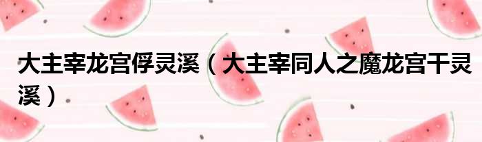 大家好,今天小六子来为大家解答以下的问题,关于大主宰龙宫俘灵溪,大主宰同人之魔龙宫干灵溪这个很多人还不知道,现在让我们一起来看看吧!