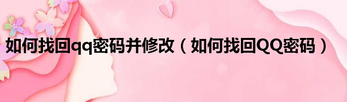 如何找回qq密码并修改(如何找回QQ密码)