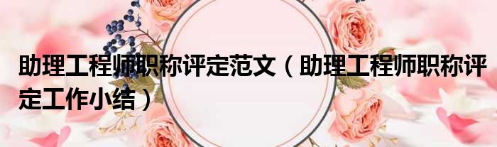 助理工程师职称评定范文(助理工程师职称评定工作小结)