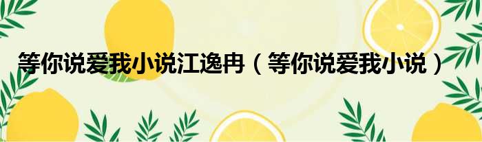 导读 大家好,今天小六子来为大家解答以下的问题,关于等你说爱我小说江逸冉,等你说爱我小说这个很多人还不知道,现在让我们一起来看看吧!1、很