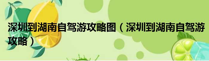 深圳到湖南自驾游攻略图(深圳到湖南自驾游攻略)