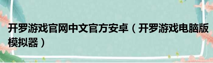 导读 大家好,今天小六子来为大家解答以下的问题,关于开罗游戏官网中文官方安卓,开罗游戏电脑版模拟器这个很多人还不知道,现在让我们一起来看