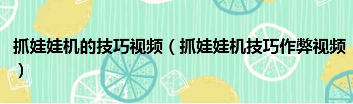 抓娃娃机的技巧视频(抓娃娃机技巧作弊视频)