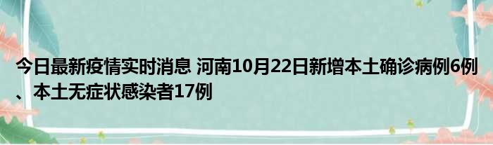 今日最新疫情实时消息 河南10月22日新增本土确诊病例6例、本土无症状感染者17例
