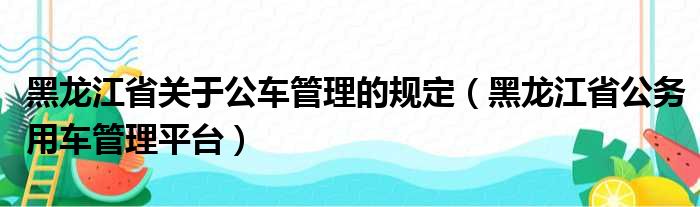 黑龙江省关于公车管理的规定(黑龙江省公务用车管理平台)