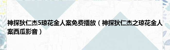 神探狄仁杰5琼花金人案免费播放(神探狄仁杰之琼花金人案西瓜影音)