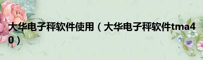 大华电子秤软件使用(大华电子秤软件tma4 0)