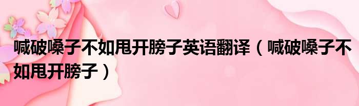 导读 大家好,今天小六子来为大家解答以下的问题,关于喊破嗓子不如甩开膀子英语翻译,喊破嗓子不如甩开膀子这个很多人还不知道,现在让我们一起