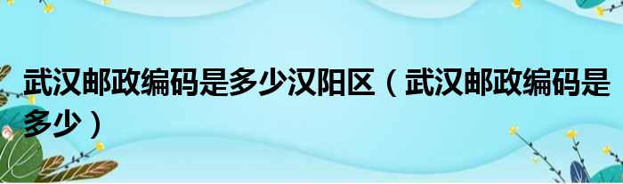 武汉邮政编码是多少汉阳区(武汉邮政编码是多少)