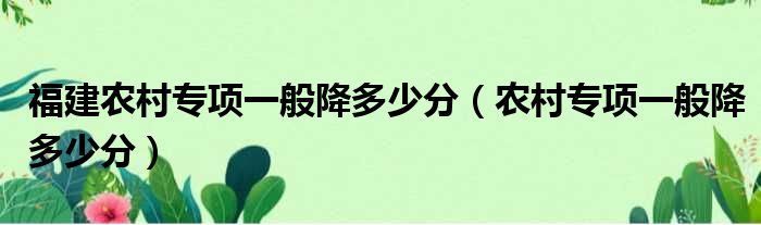福建农村专项一般降多少分(农村专项一般降多少分)