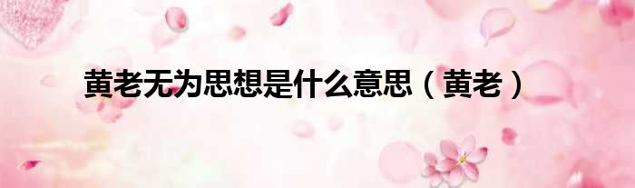 黄老无为思想是什么意思(黄老)