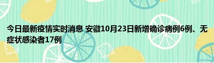 今日最新疫情实时消息 安徽10月23日新增确诊病例6例、无症状感染者17例