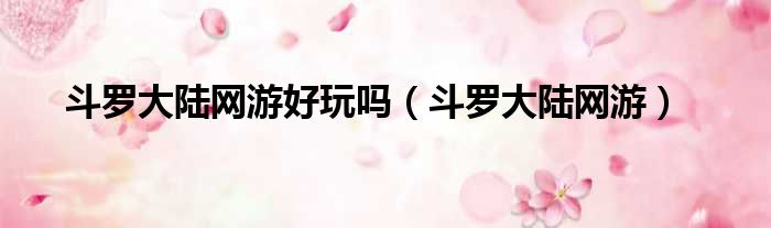 斗罗大陆网游好玩吗(斗罗大陆网游)