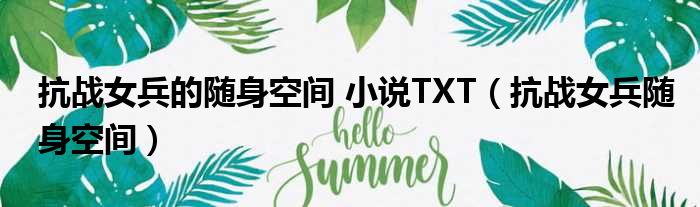 大家好,今天小六子来为大家解答以下的问题,关于抗战女兵的随身空间 小说TXT,抗战女兵随身空间这个很多人还不知道,现在让我们一起来看看吧!