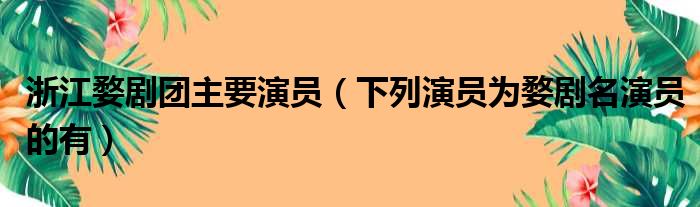 导读 大家好,今天小六子来为大家解答以下的问题,关于浙江婺剧团主要演员,下列演员为婺剧名演员的有这个很多人还不知道,现在让我们一起来看看