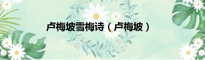 导读 大家好,今天小六子来为大家解答以下的问题,关于卢梅坡雪梅诗,卢梅坡这个很多人还不知道,现在让我们一起来看看吧!1、原文 雪梅二首