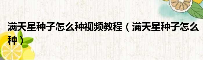满天星种子怎么种视频教程(满天星种子怎么种)