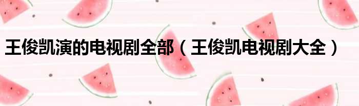 王俊凯演的电视剧全部(王俊凯电视剧大全)