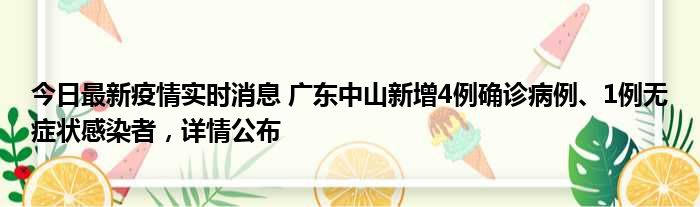 今日最新疫情实时消息 广东中山新增4例确诊病例、1例无症状感染者,详情公布