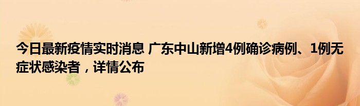 今日最新疫情实时消息 广东中山新增4例确诊病例、1例无症状感染者,详情公布