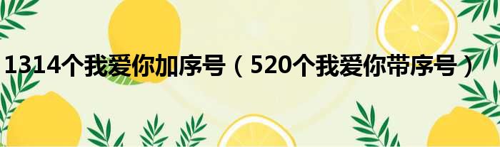 导读 大家好,今天小六子来为大家解答以下的问题,关于1314个我爱你加序号,520个我爱你带序号这个很多人还不知道,现在让我们一起来看看吧!1、