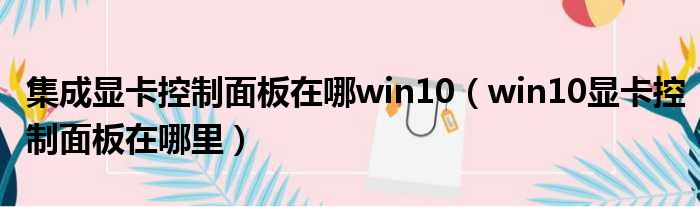 集成显卡控制面板在哪win10(win10显卡控制面板在哪里)