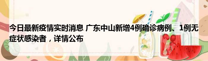 今日最新疫情实时消息 广东中山新增4例确诊病例、1例无症状感染者,详情公布