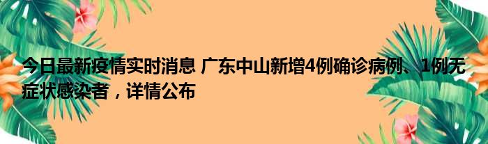 今日最新疫情实时消息 广东中山新增4例确诊病例、1例无症状感染者,详情公布