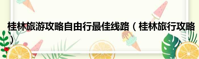 桂林旅游攻略自由行最佳线路(桂林旅行攻略)