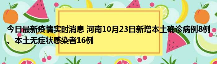今日最新疫情实时消息 河南10月23日新增本土确诊病例8例、本土无症状感染者16例