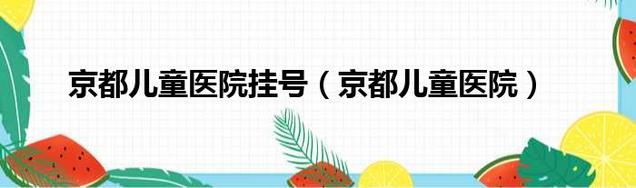 京都儿童医院挂号(京都儿童医院)