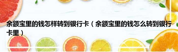 余额宝里的钱怎样转到银行卡(余额宝里的钱怎么转到银行卡里)