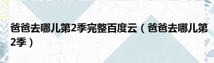 导读 大家好,今天小六子来为大家解答以下的问题,关于爸爸去哪儿第2季完整百度云,爸爸去哪儿第2季这个很多人还不知道,现在让我们一起来看看吧