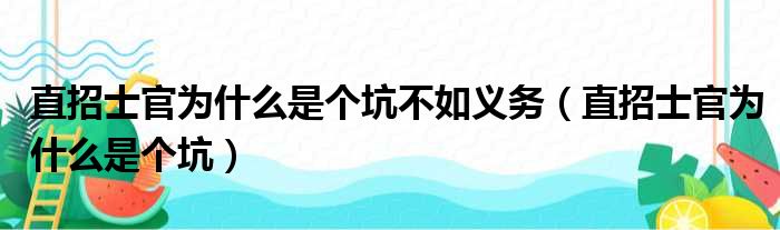直招士官为什么是个坑不如义务(直招士官为什么是个坑)