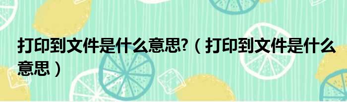 导读 大家好,今天小六子来为大家解答以下的问题,关于打印到文件是什么意思?,打印到文件是什么意思这个很多人还不知道,现在让我们一起来看看吧