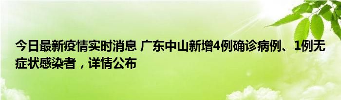 今日最新疫情实时消息 广东中山新增4例确诊病例、1例无症状感染者,详情公布