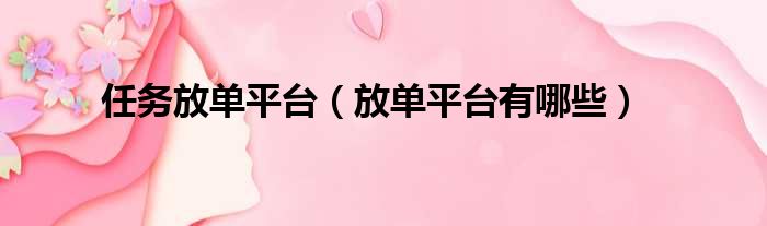 大家好,今天小六子来为大家解答以下的问题,关于任务放单平台,放单平台有哪些这个很多人还不知道,现在让我们一起来看看吧!