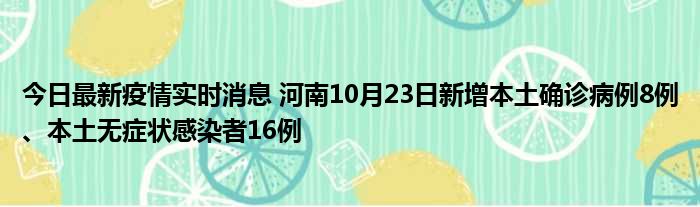 今日最新疫情实时消息 河南10月23日新增本土确诊病例8例、本土无症状感染者16例